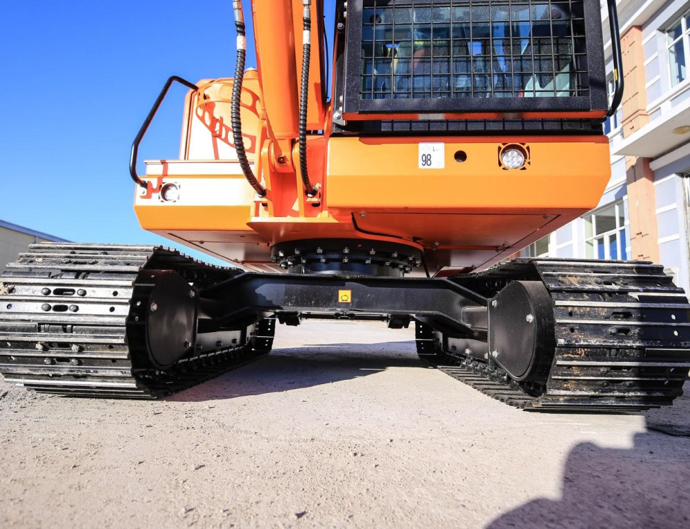 - Ходовая часть из высокопрочной низколегированной стали позволяет экскаватору выдерживать долговременные критические нагрузки